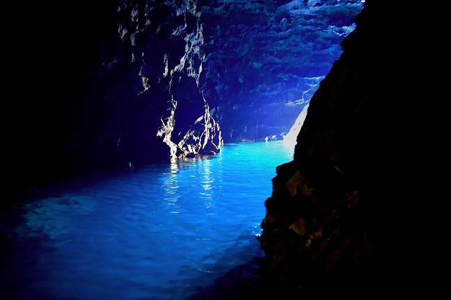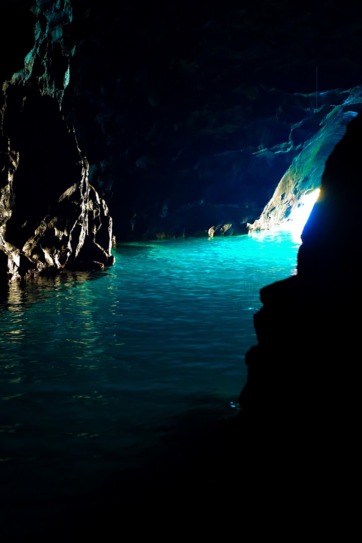 十二湖駅近くにある森山海岸の海蝕洞のひとつで、小舟がやっと通れるぐらいの入口を進むと中には、奥行き50m、高さ10mほどの洞穴になっています。