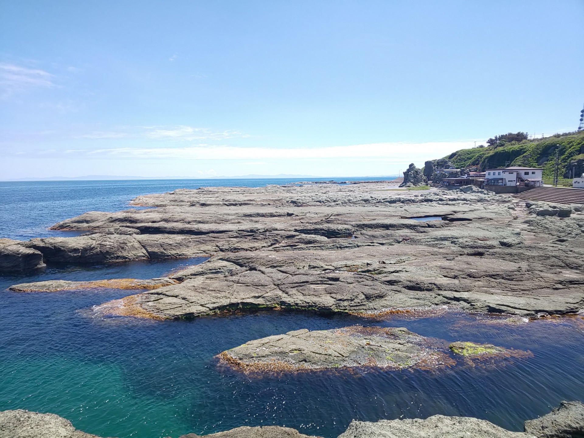 日本海に突き出た岩浜は、その上を自由に歩くことができるため、ファミリーで楽しめるスポットです。