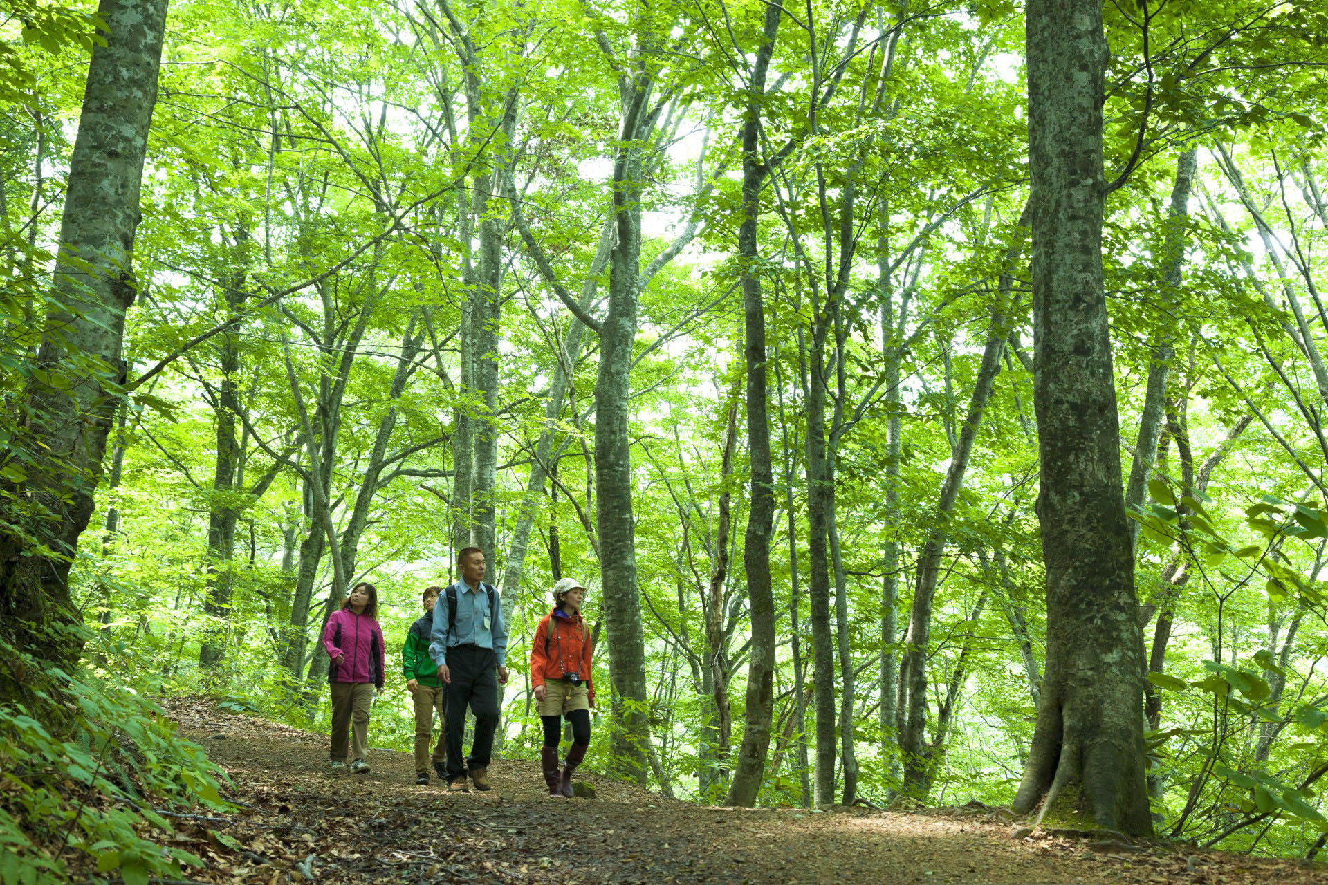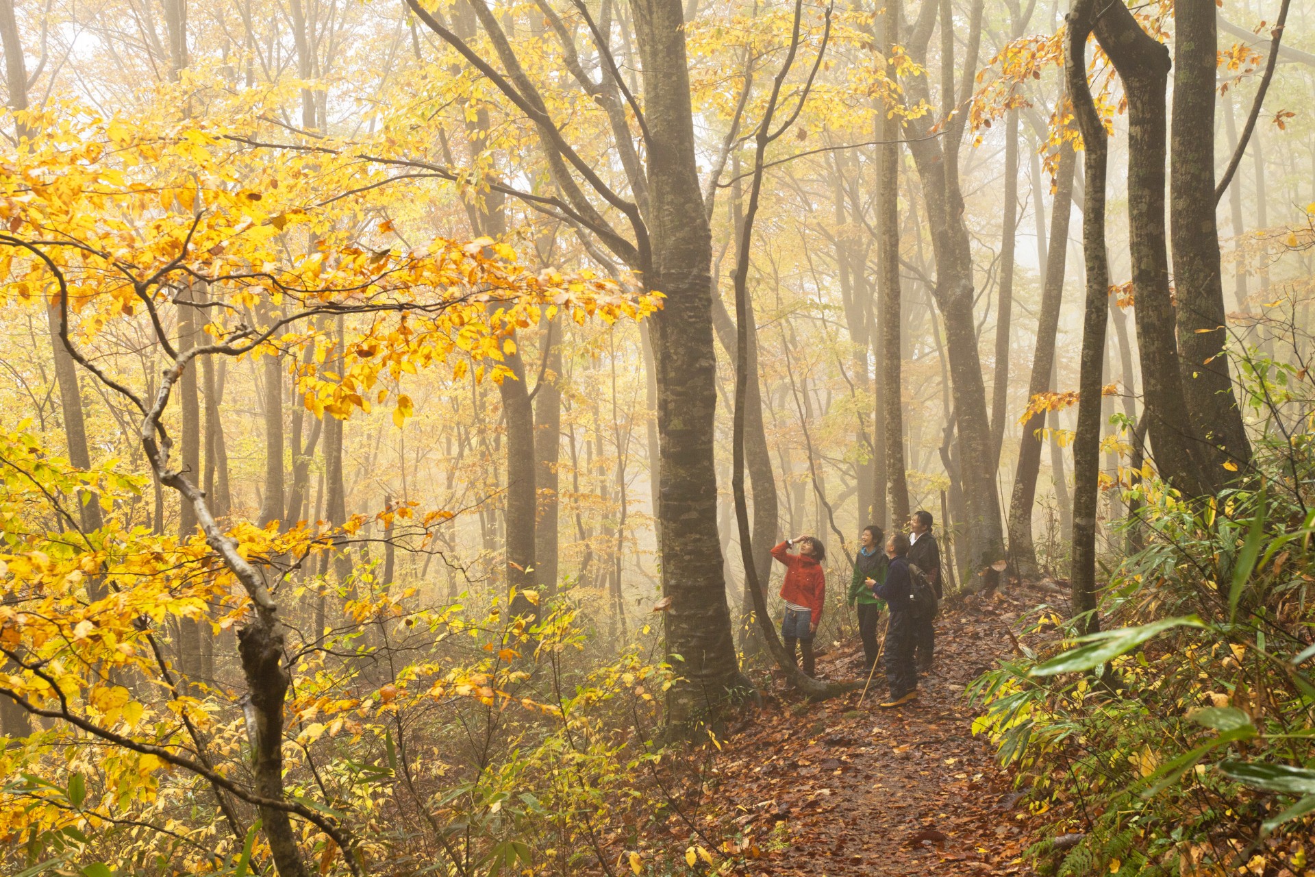 残雪と新緑が楽しめる春から、森一面が金色に色づく秋まで、ブナの木々や植物などをたっぷり観察してみてください。